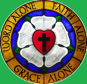**Luther's Rose: this was first sketched by Luther around 1516 to 1520 and fully designed at the request of Johann Friedrich, Elector of Saxony. The black cross represents Jesus' sacrifice, the blackness symbolizing our sin. The red heart symbolizes our faith; Luther said that because of our sin, the heart ought to be black, yet, due to Christ, the heart is not utterly destroyed. The heart is on a white rose, to show that faith gives joy, comfort and peace: white is the color of angels and spirits. The sky blue field symbolizes joy and that faith is the beginning of future heavenly joy. The gold ring symbolizes precious eternity, which has no beginning and end.